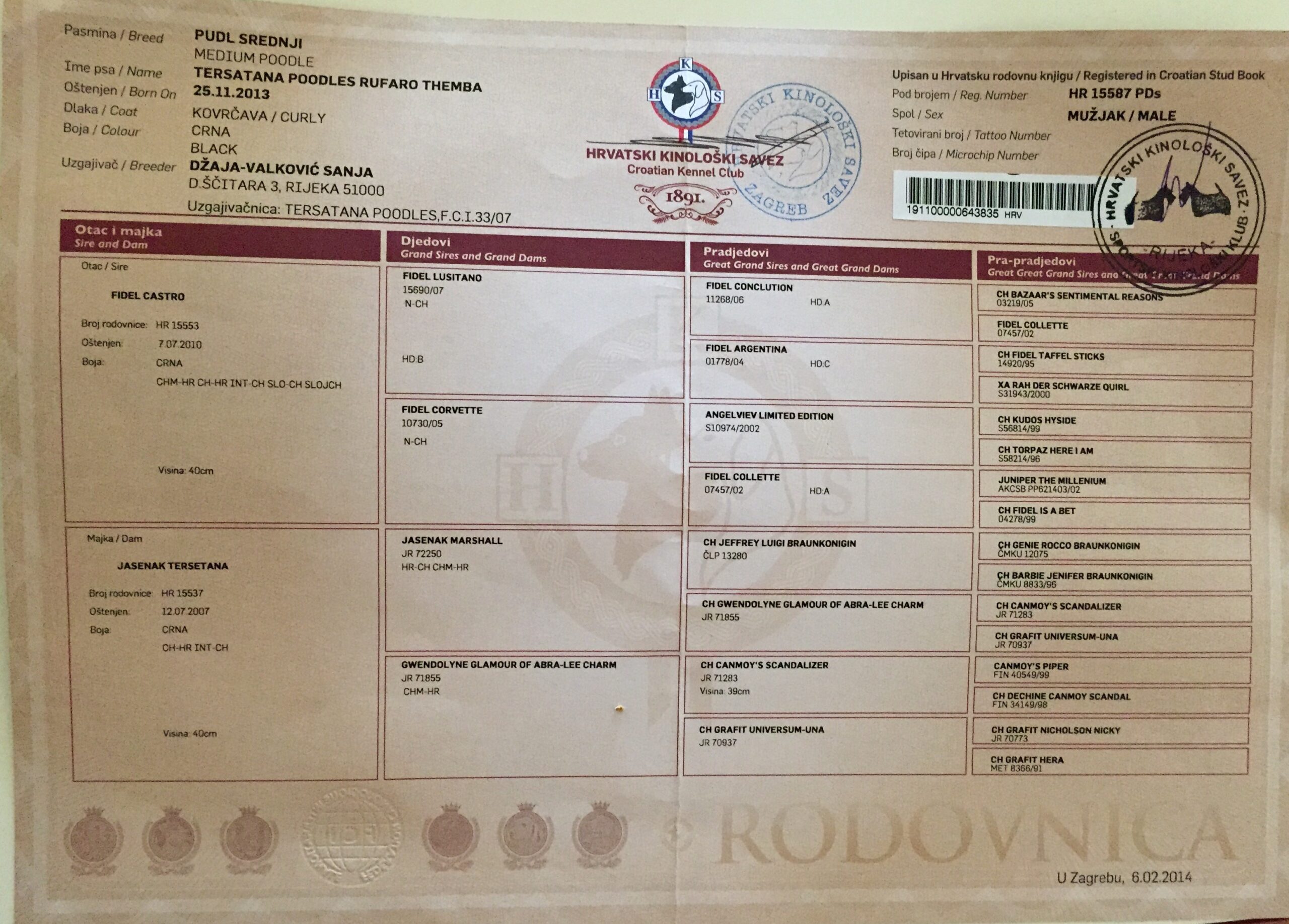 Tersatana Poodles registrirana je 2007. godine Fci 33/07